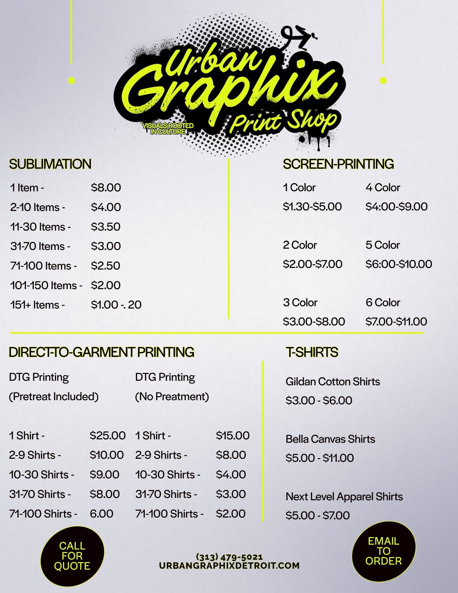 Direct-to-garment (DTG) printing isa method for printing images and graphics directly onto fabric using inkjet technology. Can print unlimited colors using CMYK formatting.